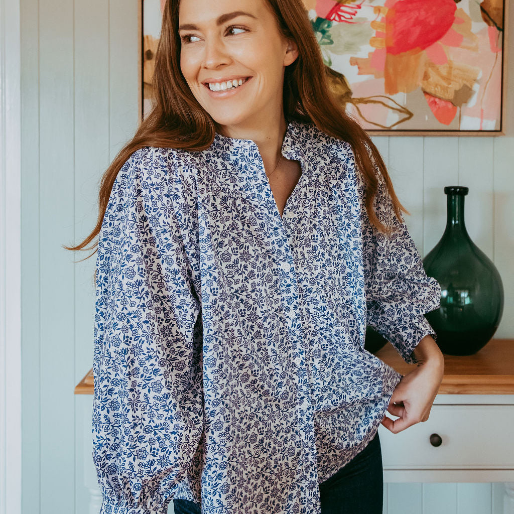 Blusa/camisa de algodón 100 % de Periwinkle Liberty Fabrics