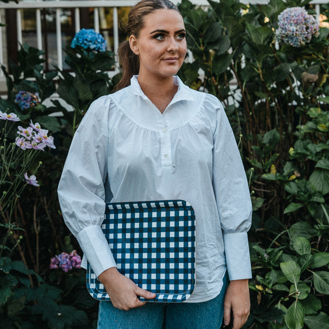 Navy Gingham for EVERY occasion. This is so beautifully classic at the options for usage are endless! I would use this for a cheese platter, cake tray or even a decorative backdrop in my kitchen!