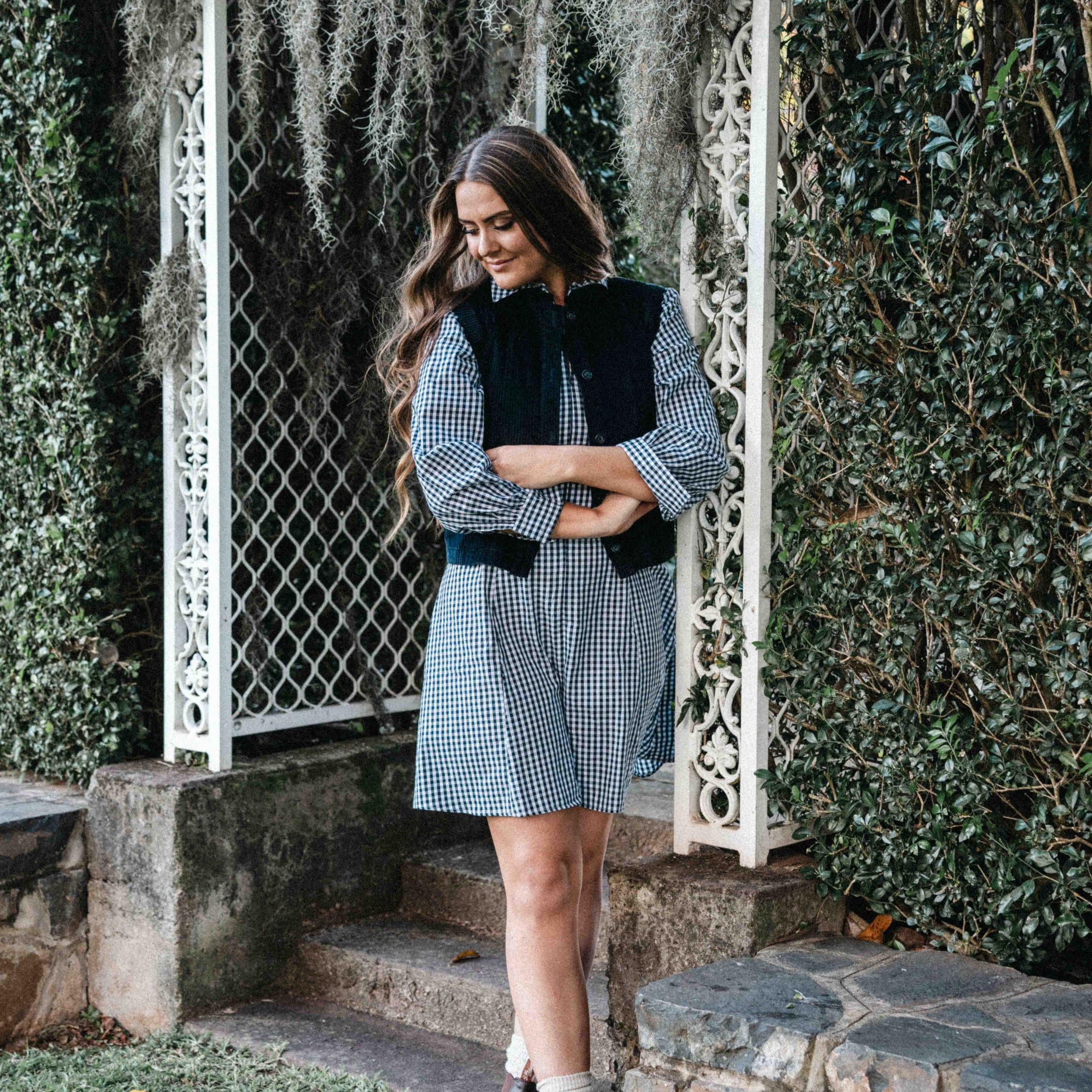 Crafted in rich navy corduroy, this vest is all about effortless layering with a touch of charm. The scalloped detailing adds a feminine twist, while the structured yet easy silhouette makes it the perfect pairing with shirts, dresses, or your favorite jeans.
