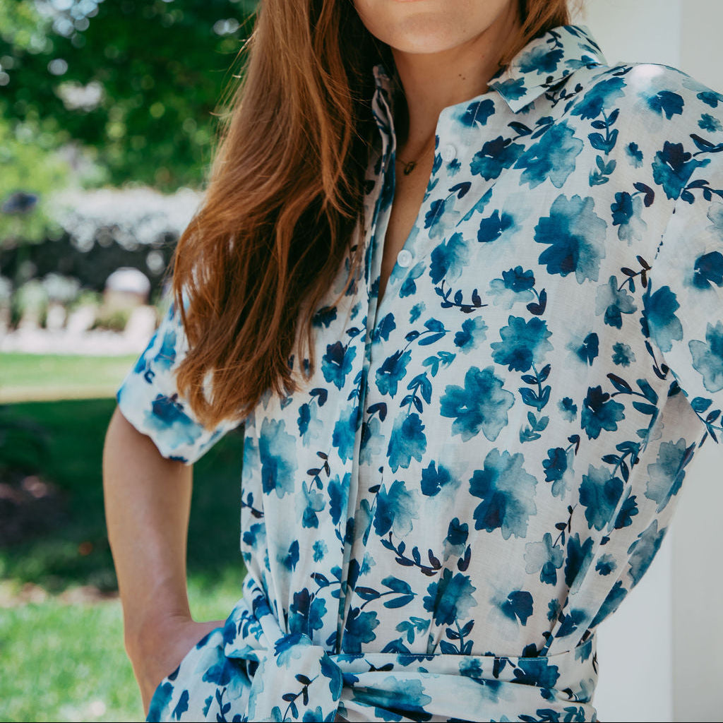 A classic linen shirt dress designed for effortless everyday wear. Featuring a button-down front and adjustable tie waist for a flattering, custom fit. Lightweight, breathable and perfect for warm days.