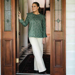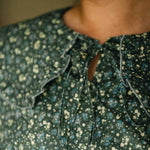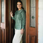 This bottle green floral shirt brings a nostalgic touch to modern dressing. Made from soft, breathable cotton, it features a statement Peter Pan collar, a delicate tie at the neck, and gently cuffed sleeves for a refined, feminine finish.