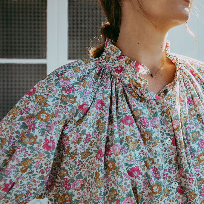 Clare Rich by Liberty Fabrics Short Sleeve Shirt with Frill Collar