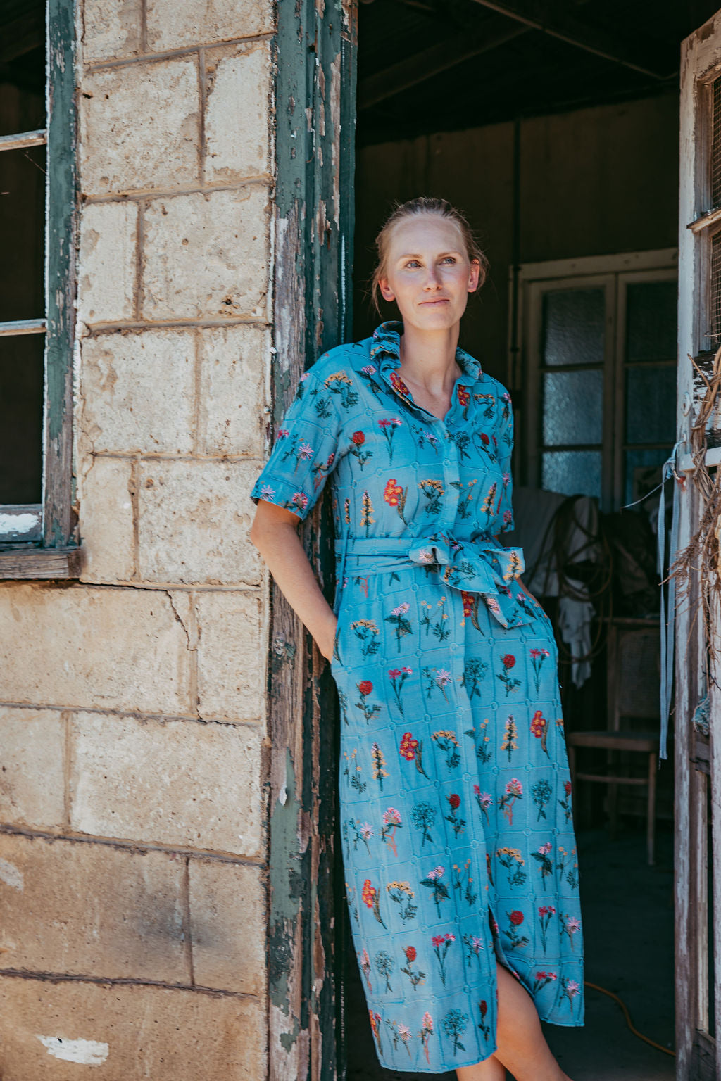 A classic linen shirt dress designed for effortless everyday wear. Featuring a button-down front and adjustable tie waist for a flattering, custom fit. Lightweight, breathable and perfect for warm days.