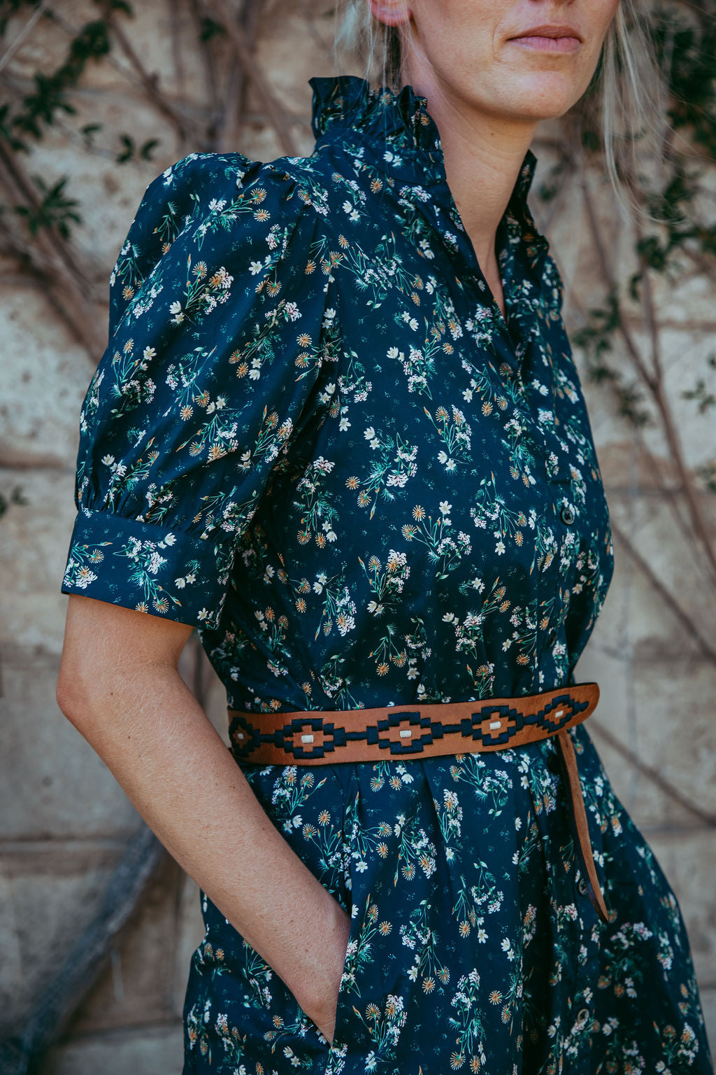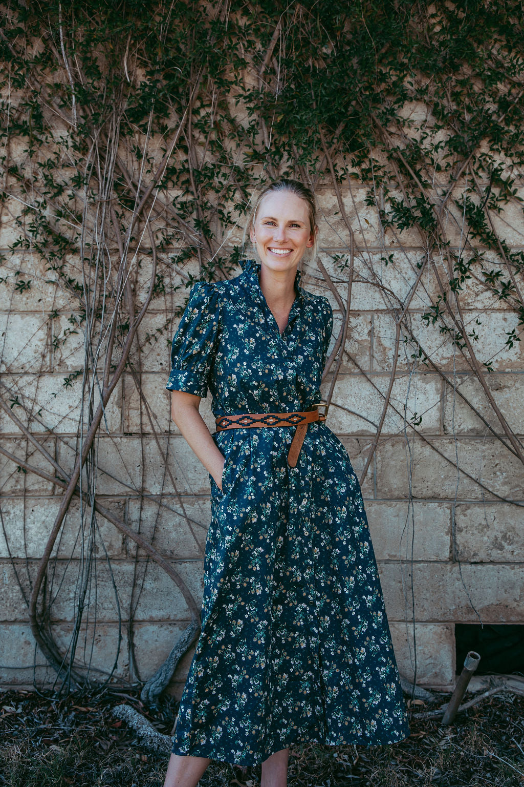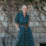 The Daphne Dress features a charming navy floral print that transitions beautifully across seasons. Its distinctive frill collar adds feminine detail, while the flattering silhouette works wonderfully layered or worn solo. Crafted from pure cotton for comfort and breathability, this dress runs true to size, making it an effortless addition to your everyday wardrobe.