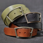 Features: Grainy leather design, silver-tone hardware, medium width, adjustable frame buckle closure, studs on the end
