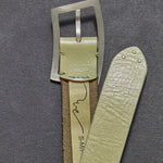 Features: Grainy leather design, silver-tone hardware, medium width, adjustable frame buckle closure, studs on the end