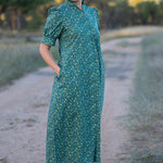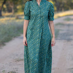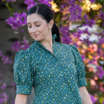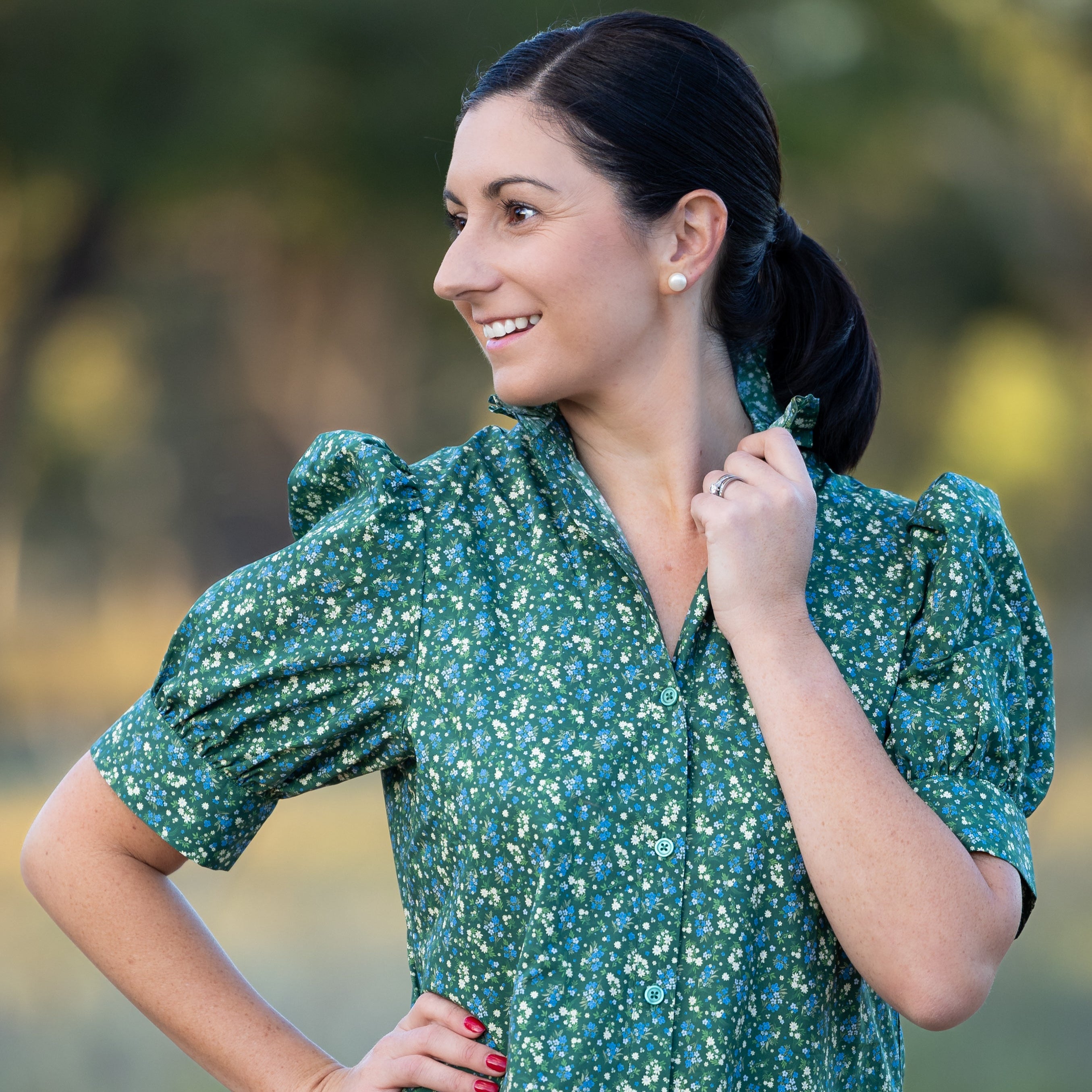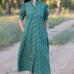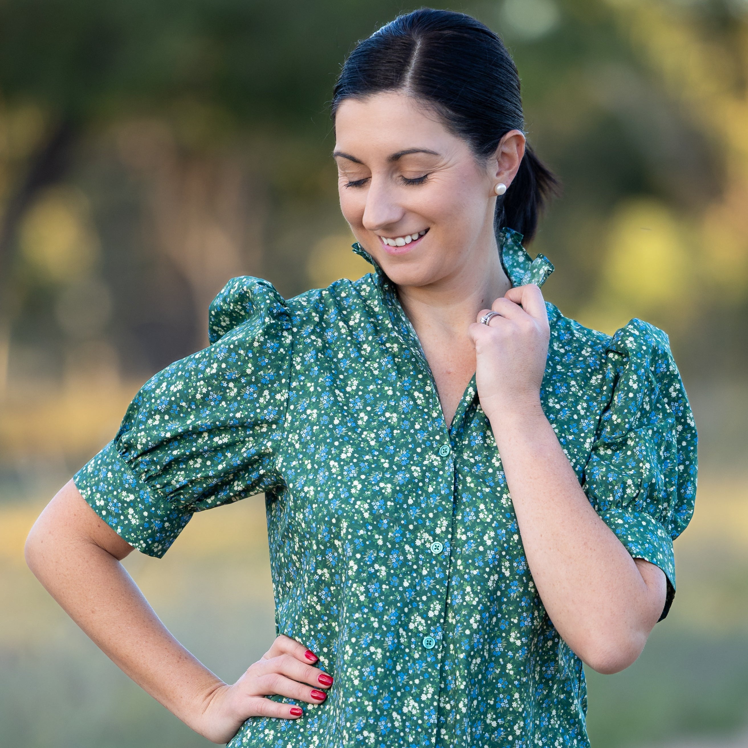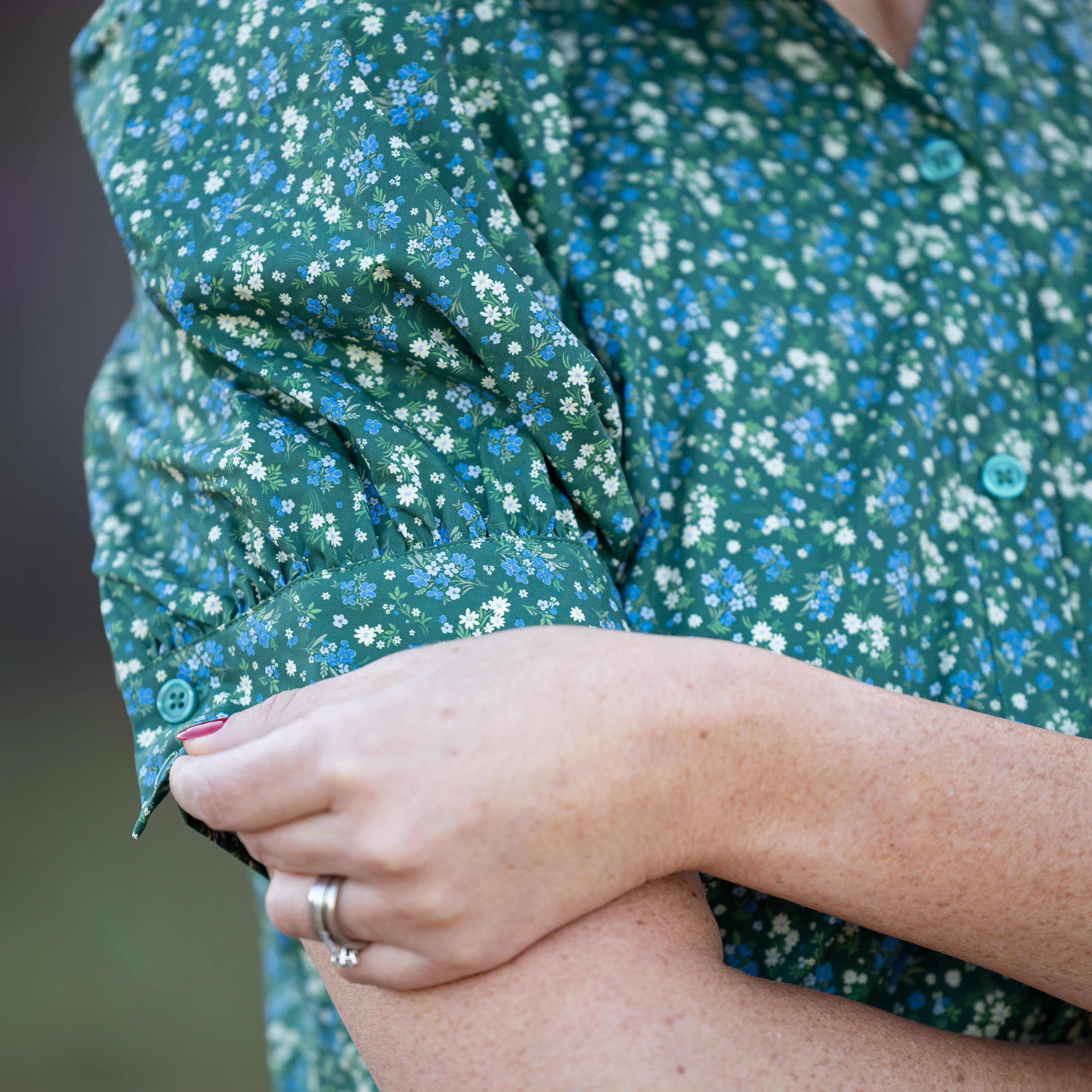 In a beautifully bold green floral print, this dress brings new life to a timeless silhouette. With its frill collar and cuffed sleeves, it strikes the perfect balance between romance and wearability. Whether styled with boots in cooler months or layered over jeans for a relaxed twist, it’s a piece you’ll reach for year-round.
