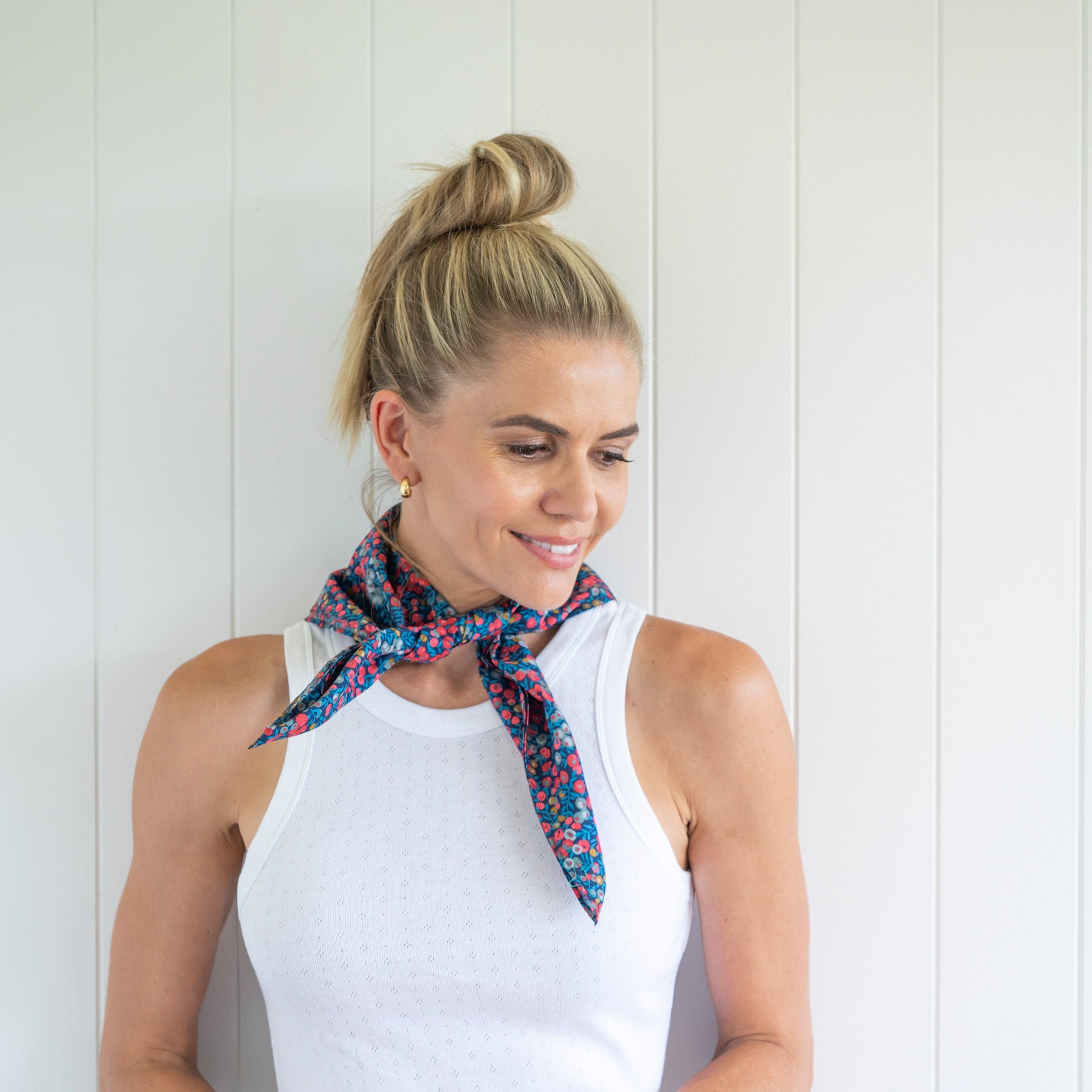 Say hello to the Liberty Fabrics Scarf, crafted in the best soft and silky material, with bold floral prints providing a touch of elegance to any look. Easy and sophisticated, this scarf can be worn in countless ways—from wrapping it around your neck for a pop of color to tying it around your bag for a chic new accessory. Its size means it's perfect for a lightweight Summer sun block or a warm Winter's wrap-up. Timeless wardrobe piece that can give your style that something special twelve months a year.