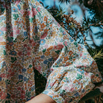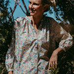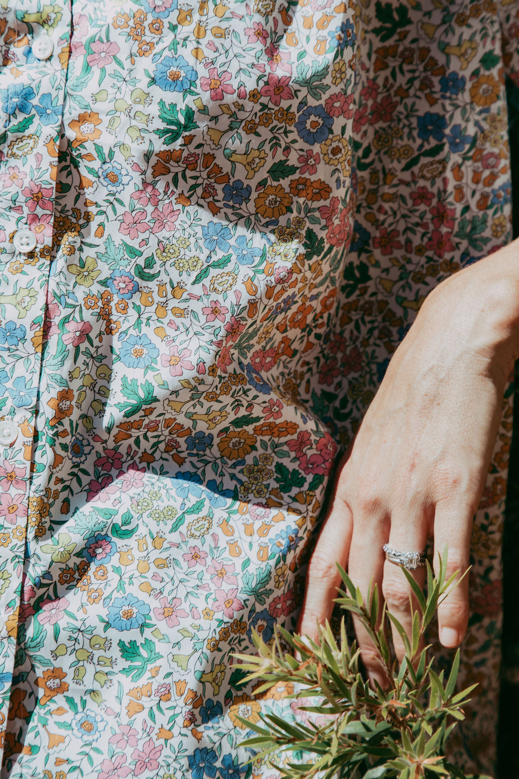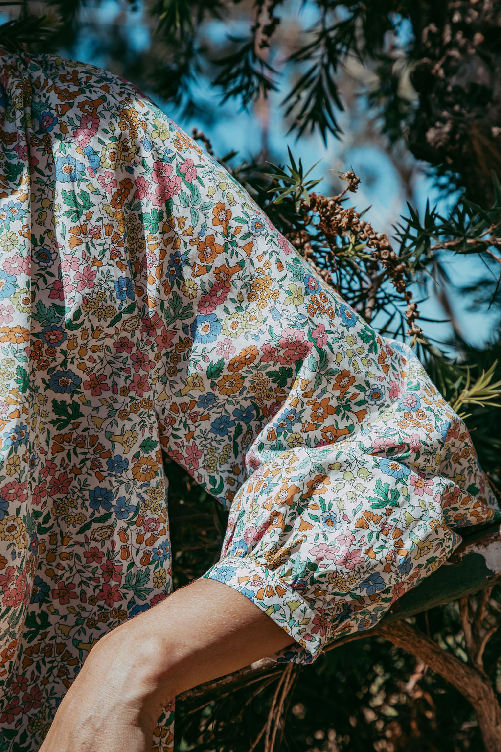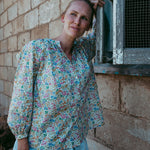 Crafted from 100% cotton Tana Lawn Cotton by Liberty Fabrics, this signature style features a mandarin collar and 3/4 sleeves—no ironing required. Versatile enough for any occasion, it's the perfect seasonless cotton piece that feels both nostalgic and contemporary.