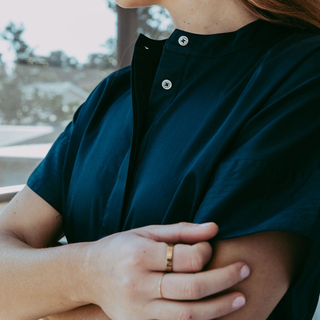 Navy Cotton Short Sleeve Shirt