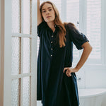 Button-down front, a collar, and back pleats for added structure, this dress allows for a relaxed, flowing silhouette for more comfort.