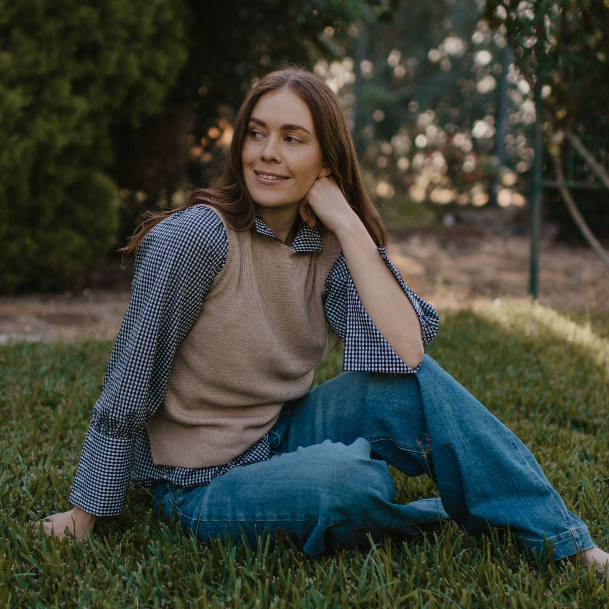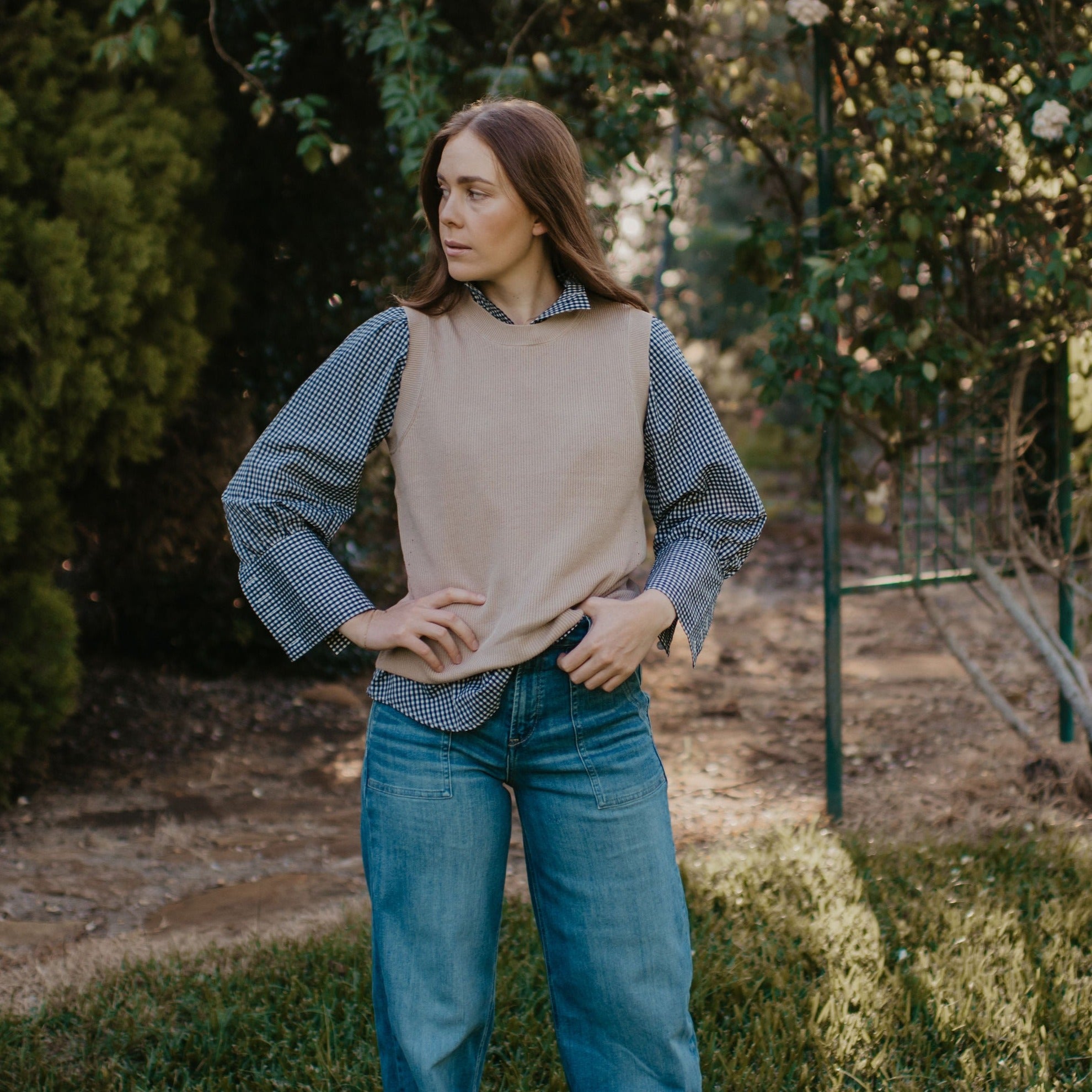Featuring neutral color tones carefully curated to complement any ensemble, our vest seamlessly integrates into your existing wardrobe. Whether you're layering it over one of our exquisite blouses during cooler months or wearing it solo as temperatures rise, its timeless appeal adds a touch of sophistication to any outfit.