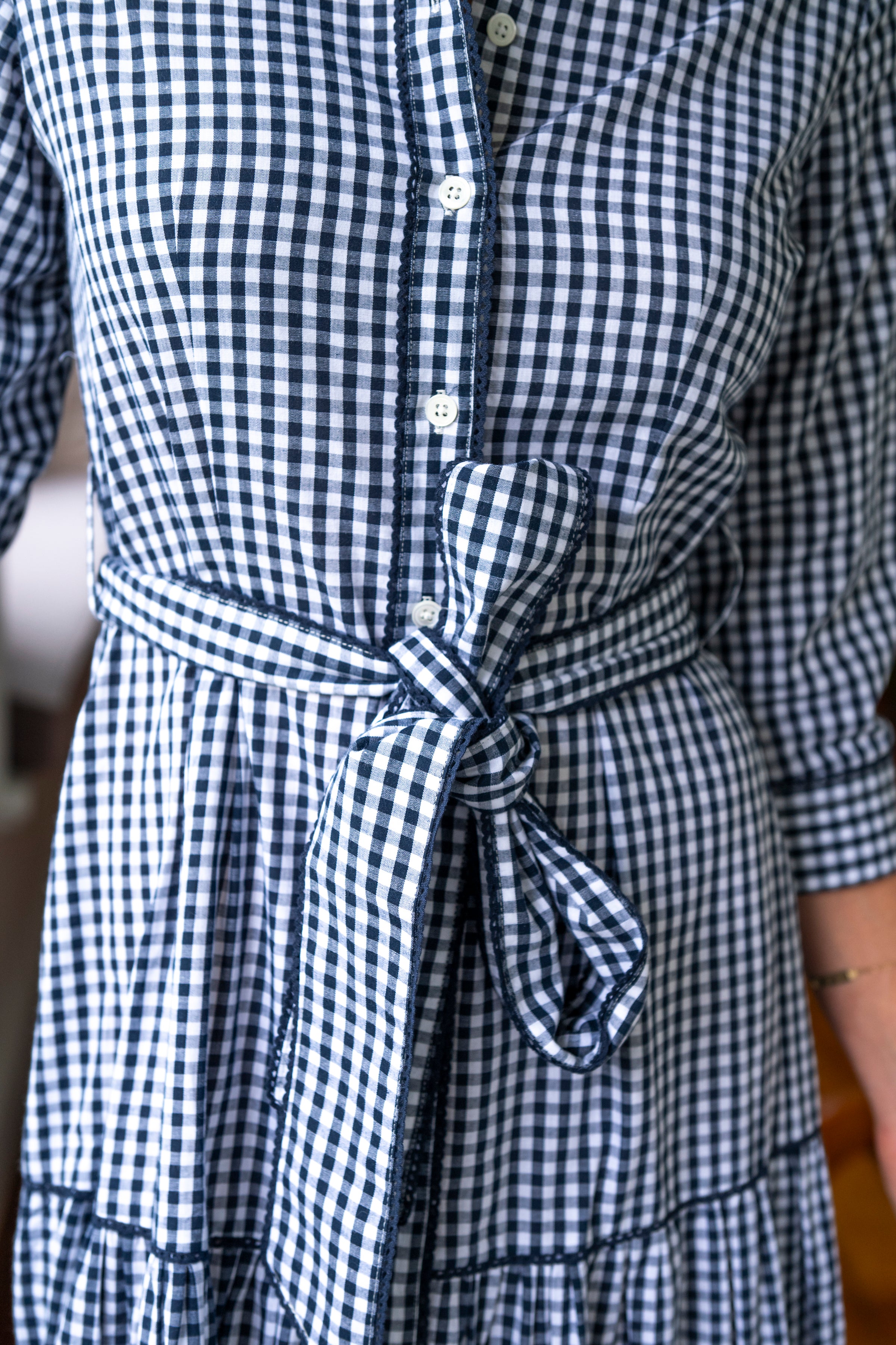 Introducing the Tiered Collared Maxi Dress in classic navy gingham—your new go-to for effortless elegance. Made from soft, breathable cotton, this dress promises comfort without compromising on style. The iconic gingham print brings a touch of heritage charm, while the collared neckline adds a polished, sophisticated flair.