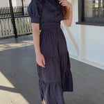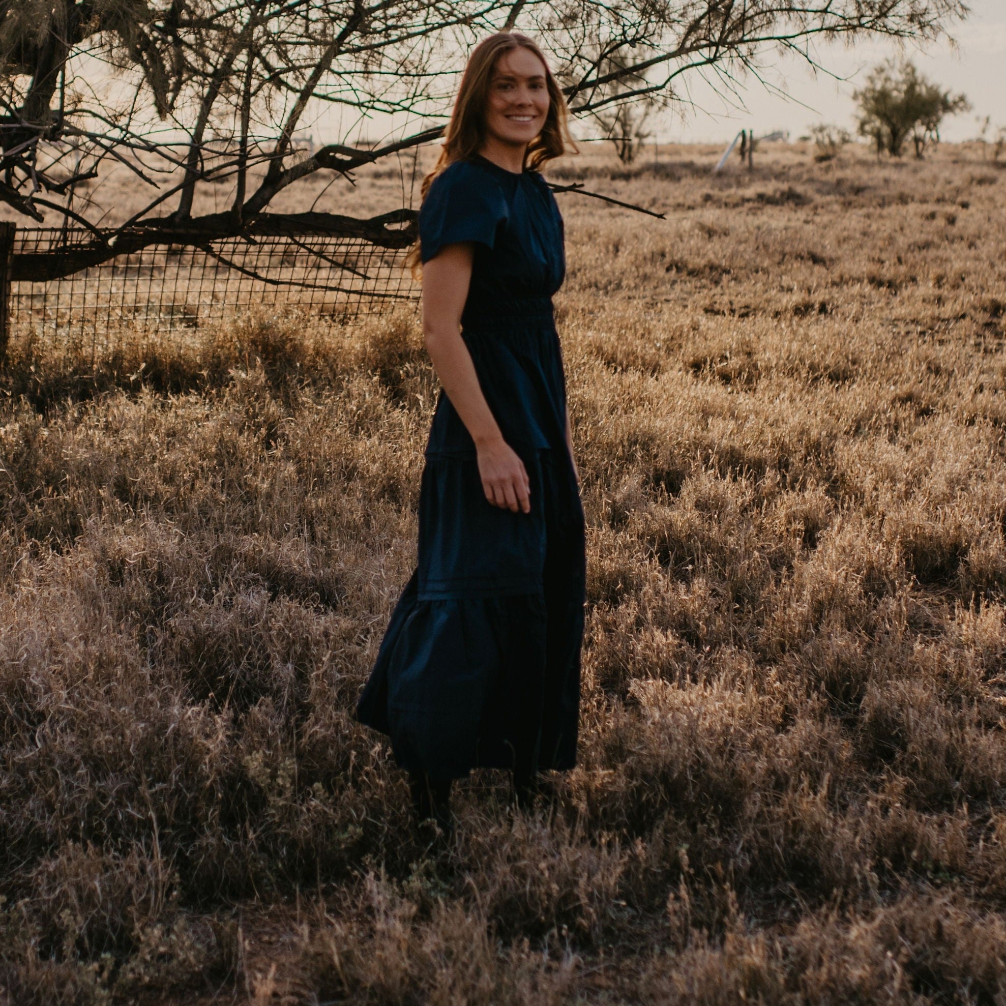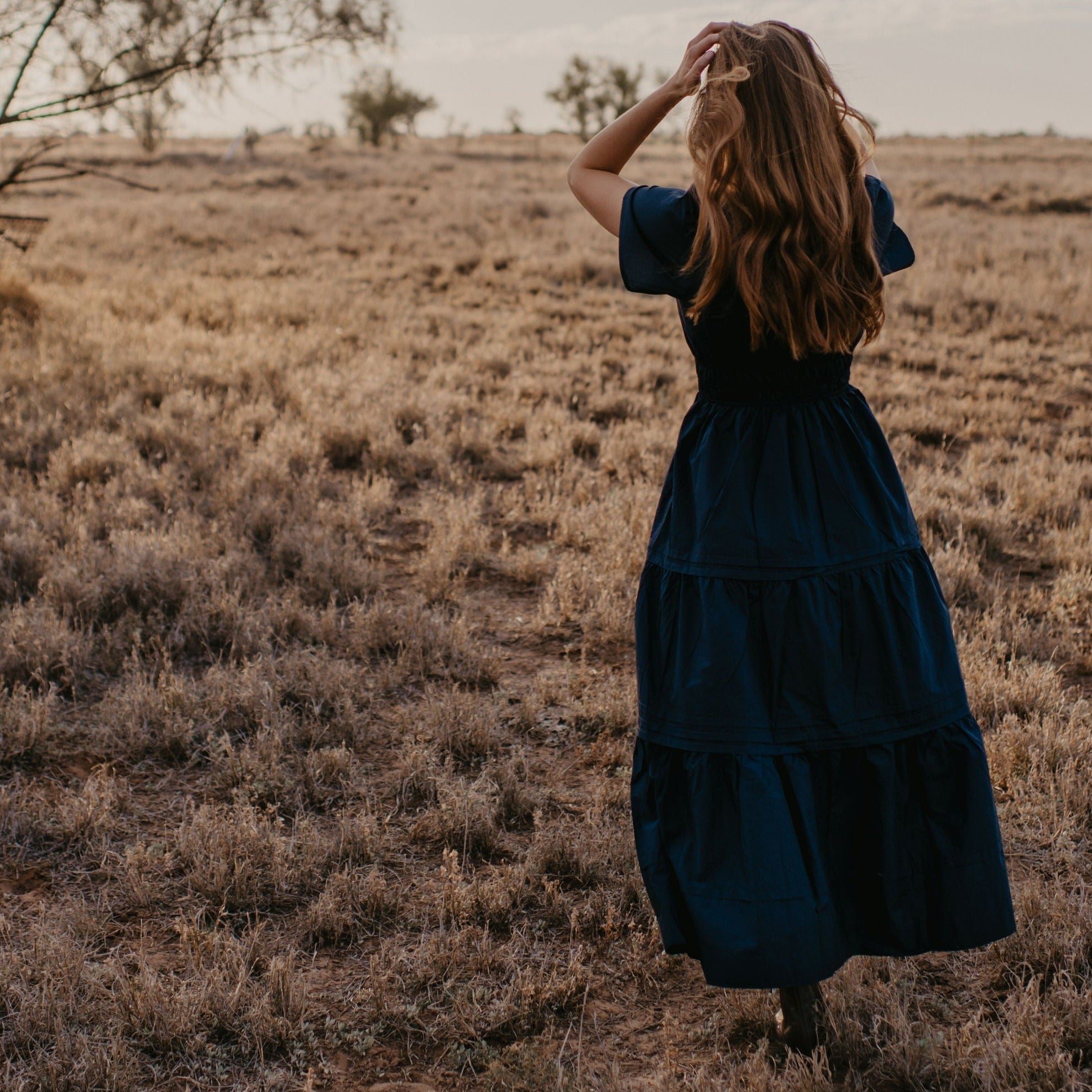 Navy Maxi Dress 100% Cotton Sorority Clothing. This dress is crafted from beautiful fabric. It's extremely comfortable, easy to wear, can be accessorised in many different ways to suit different occasions and gets lots of compliments!